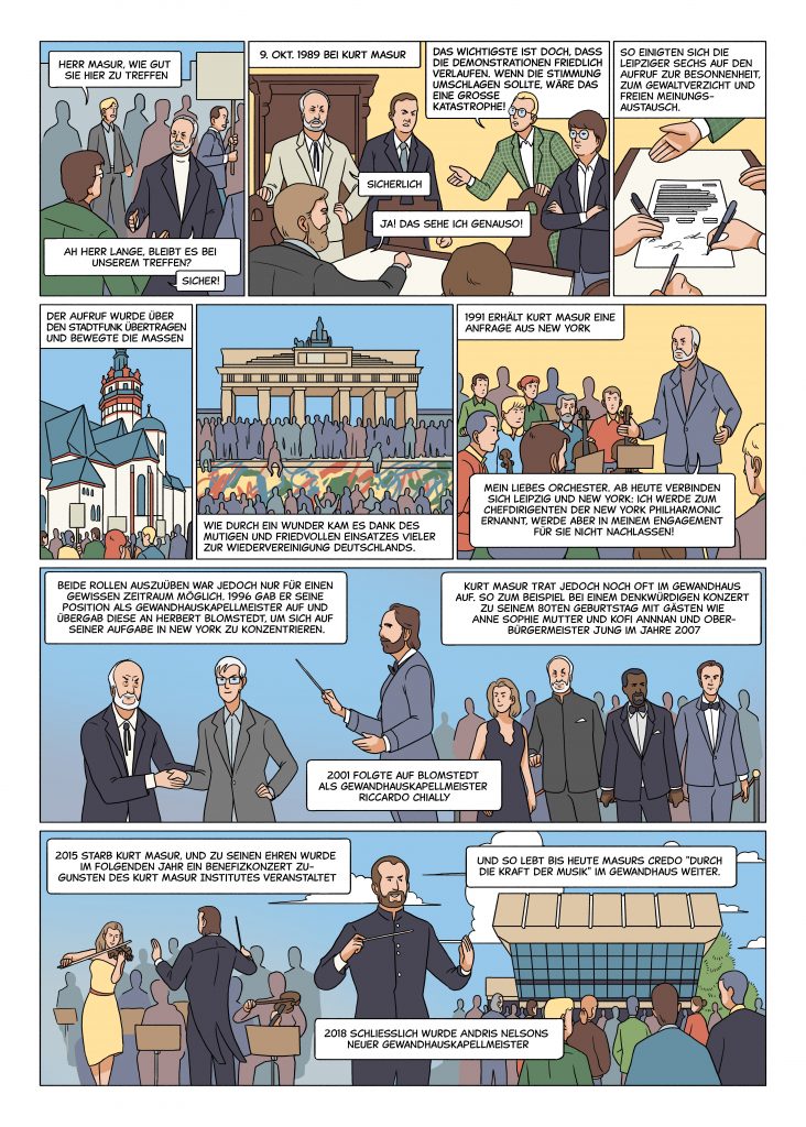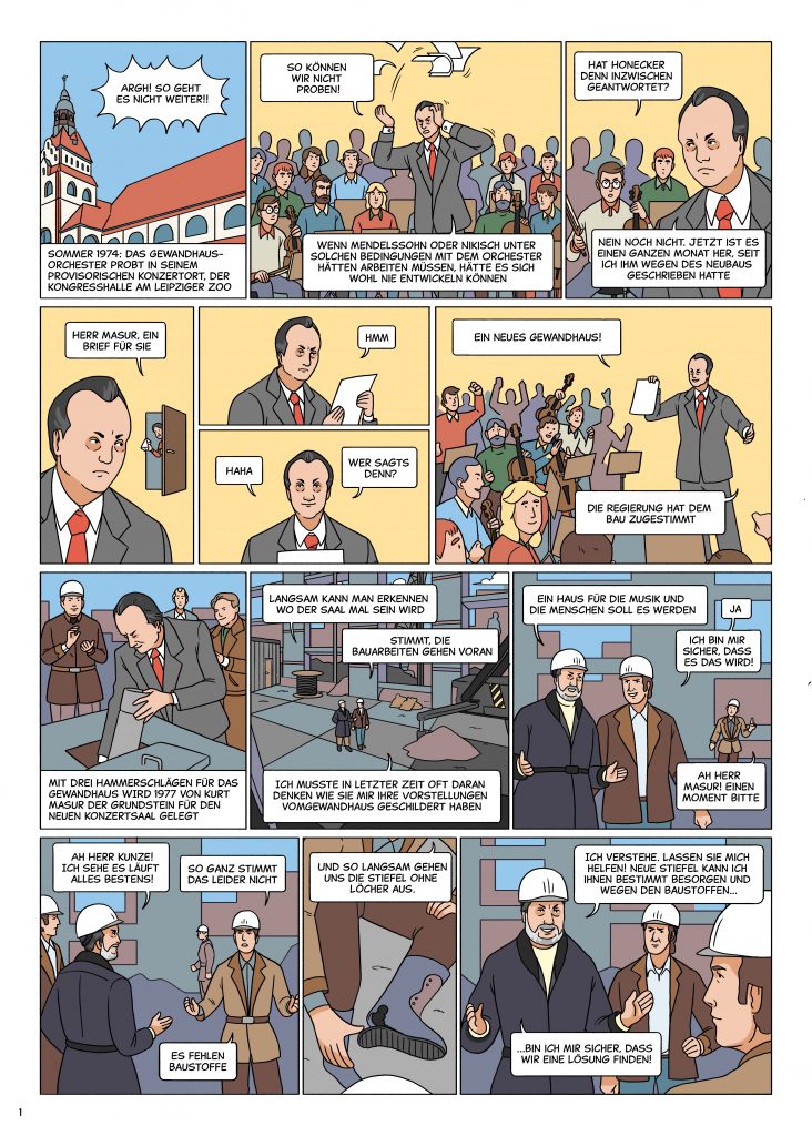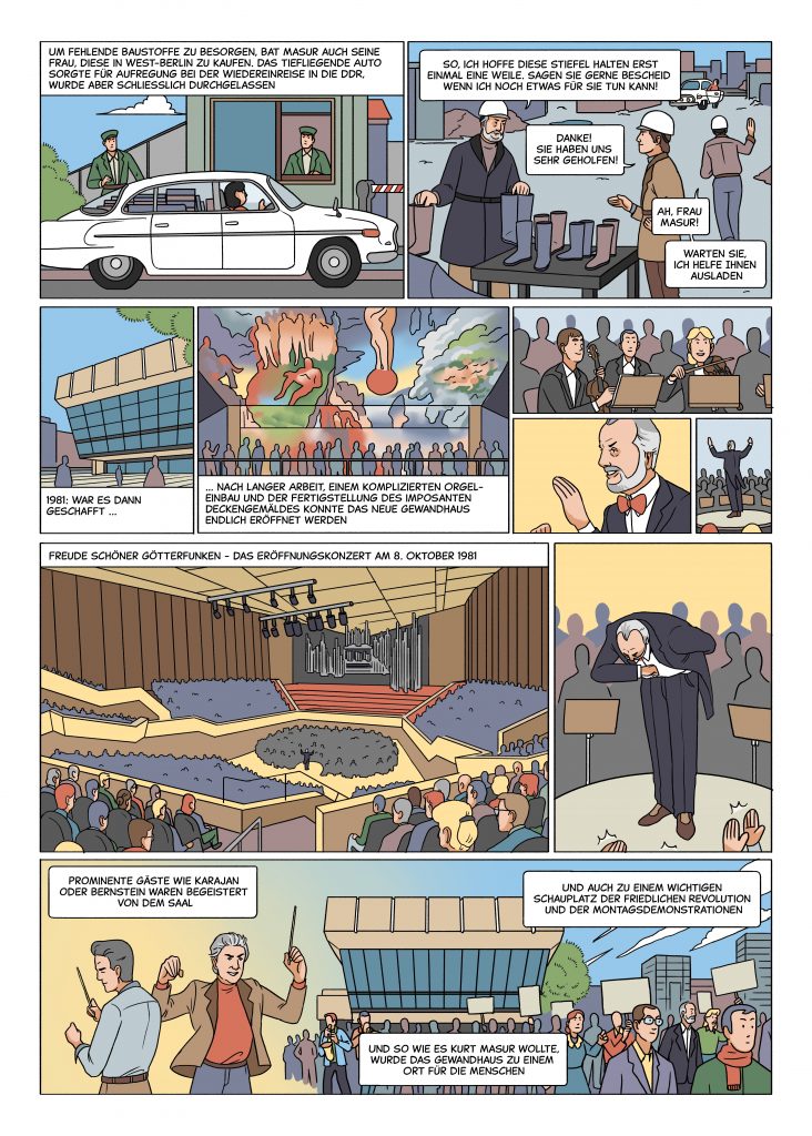 Aufbauend zum Centennial des Dirigenten Kurt Masur 2027 zeichne ich für das Kurt-Masur-Institut eine Comicreihe in der Geschichten aus seinem Leben erzählt werden. In der ersten Ausgabe „Kurt & Das Neue Gewandhaus“ geht es um den Bau des Leipziger Konzertsaals und dessen Bedeutung für die Geschichte der Stadt.